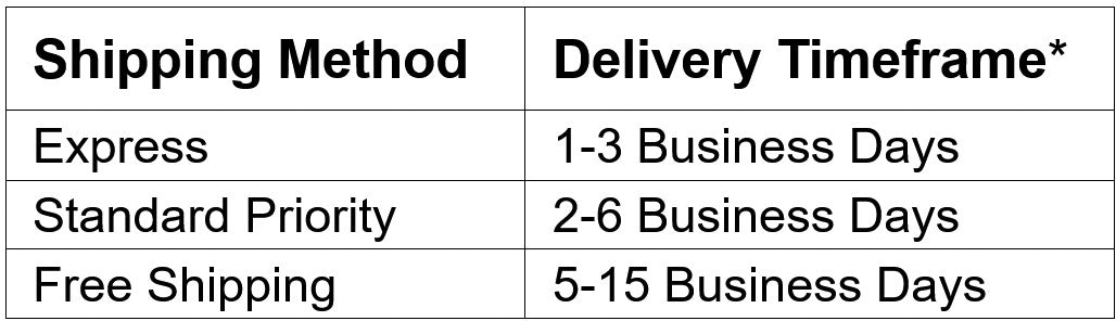 *Delivery times are estimates only and does not account for possible delivery delays as a result of natural disasters, courier congestion, etc.